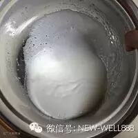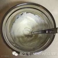 11. 很多人第一次做都不太明白湿性发泡,我第一做蛋白就打过了,导致开裂。简单判断,蛋白变白色,体积膨胀,能在盆内流动,就可以了。