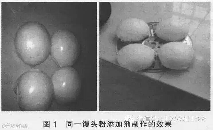 图1是实际操作过程中同一馒头粉添加剂在普通粉和精粉中的大小样差异。
