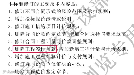 新版标准删除了工程签证条款!