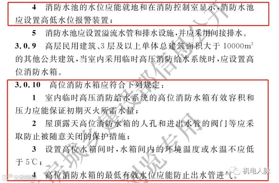 3.0.10 高位消防水箱应符合下列规定: