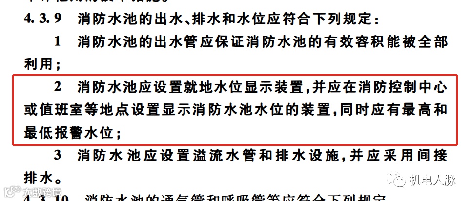 4 消防水池的水位应能就地和在消防控制室显示,消防水池应设置高低水位报警装置;