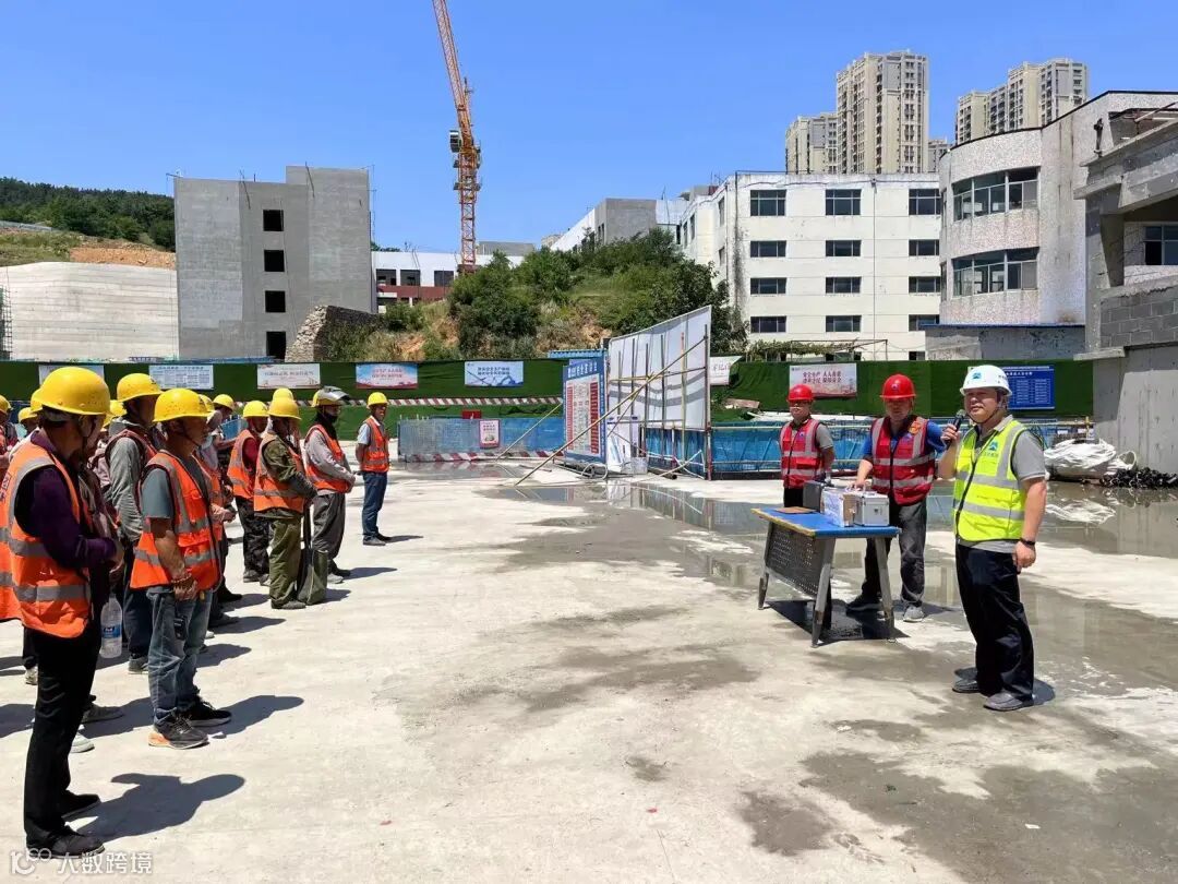 项目经理南金兵做活动总结,并强调项目部管理人员要全面发展,充分将安全、技术、质量、生产知识作为安全管理工具,要将安全生产与先进技术、生产进度“齐抓共管”,推动项目高质量建设。