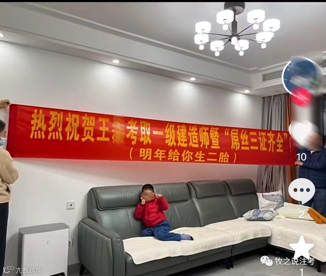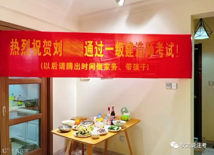 考试通过,与家人的付出与支持是分不开的,这两天短视频上不少家属拉条幅庆祝自己老公通过一级建造师考试,喜悦之情,溢于言表。