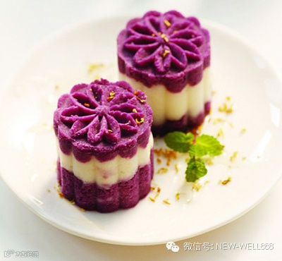 艳丽的紫色和幼白的搭配已经很馋人眼;牛奶的香滑口感与紫薯的粗纤维质的、酥香口感更是绝配。