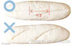 ③以错误的方式划入割纹时,烤焙后也不会膨胀出漂亮的割纹