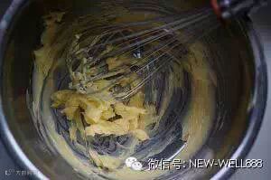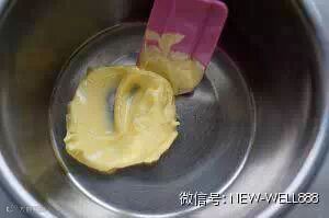 1、黄油软化后放入容器中,用橡皮刮刀拌匀;