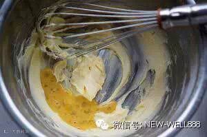 3、分两次加入蛋液,每次都要搅拌均匀;