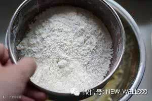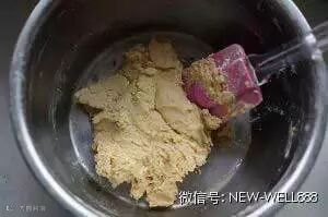 4、筛入低筋面粉,用刮刀翻拌成无干粉的面团;