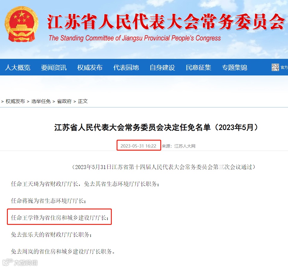 5月31日,江苏人大发布一批任免名单,其中: