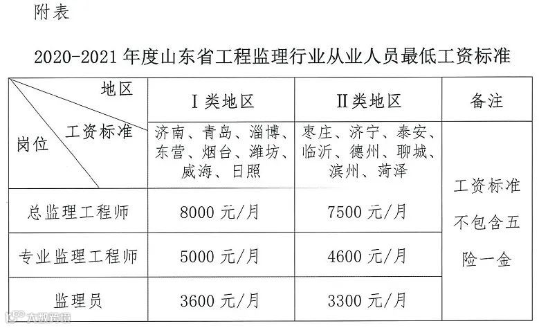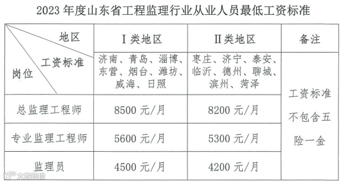 而2022年山东省建设监理与咨询协会发布《关于发布2022年度山东省工程监理行业从业人员最低工资标准的动态通告》,明确: