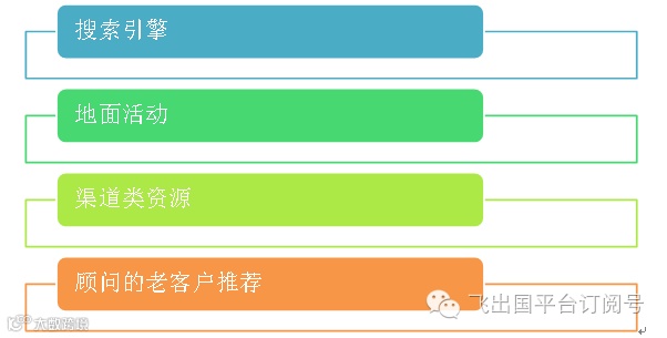 第一个是搜索引擎,第二个是地面活动,即教育家们的讲座,第三个是渠道类资源,第四个是顾问的老客户推荐。