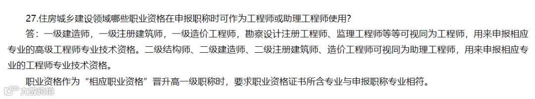 2.二级结构师、二级建造师、二级注册建筑师、造价工程师可视同为助理工程师,用来申报相应专业的工程师专业技术资格。