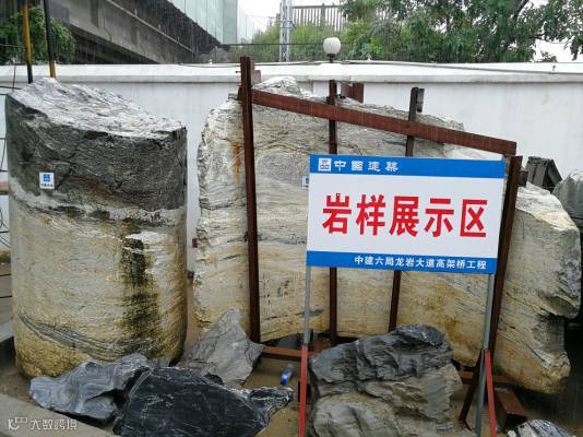 取出的岩样以石灰岩和花岗岩为主,要么是溶洞区的月牙状(地下极容易坍塌),要么是微风化的岩石(岩石极硬,硬度达到115mpa),每米基本要用掉6至10个合金牙轮钻头。国内大型桥梁入岩深度一般在设计桩基的4~5倍,2.5m桩基入岩只需10m左右即满足要求,由于需要穿越溶洞,本桥桩基础入岩达到70m左右,是正常入岩深度的7~8倍,在国内仅有。