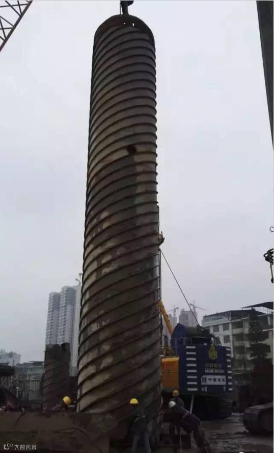 考虑到地下溶洞极其发育,我们采用全护桶跟进方式进行施工,护桶最多时候为6层,分别为(直径)3.6m,3.3m,3.05m,2.86m,2.65m,2.42m。