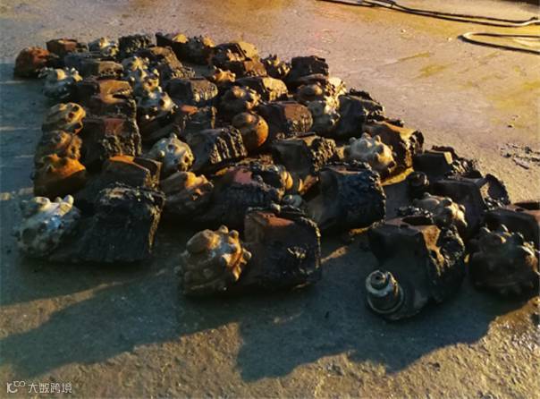 由于需要下放不同直径的护桶和处理不同岩质需求,项目部准备了三十多种钻头,有不同直径的钻头,有不同作用的钻头(如取芯钻头,全断面钻头,捞渣钻头,导正钻头等等)。