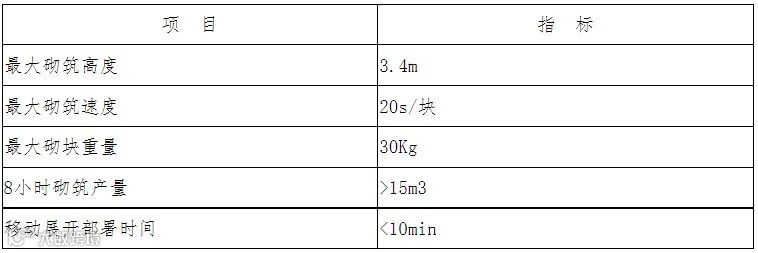 MOBOT GT30型砌筑机器人的主要性能指标(见表2)及其技术特点: