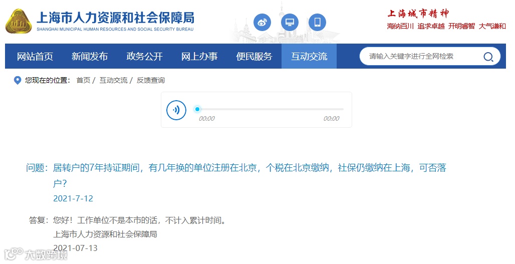 问题:居转户的7年持证期间,有几年换的单位注册在北京,个税在北京缴纳,社保仍缴纳在上海,可否落户?