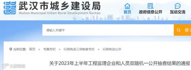 根据《市城建局2023年“双随机、一公开”抽查计划》,武汉市城乡建设局于2023年6月5日至7月28日开展了2023年上半年工程监理企业和人员“双随机一公开”抽查,现将抽查检查结果通报如下。