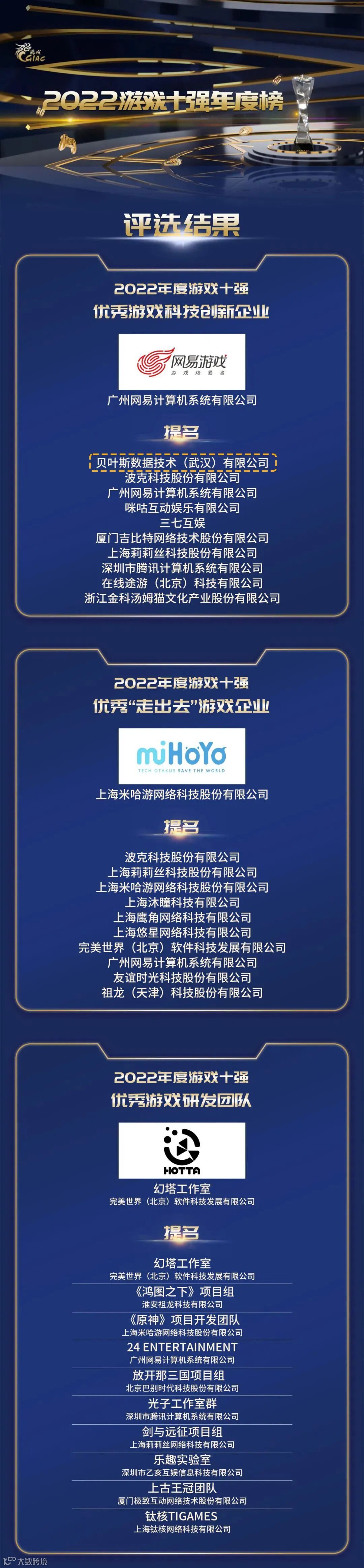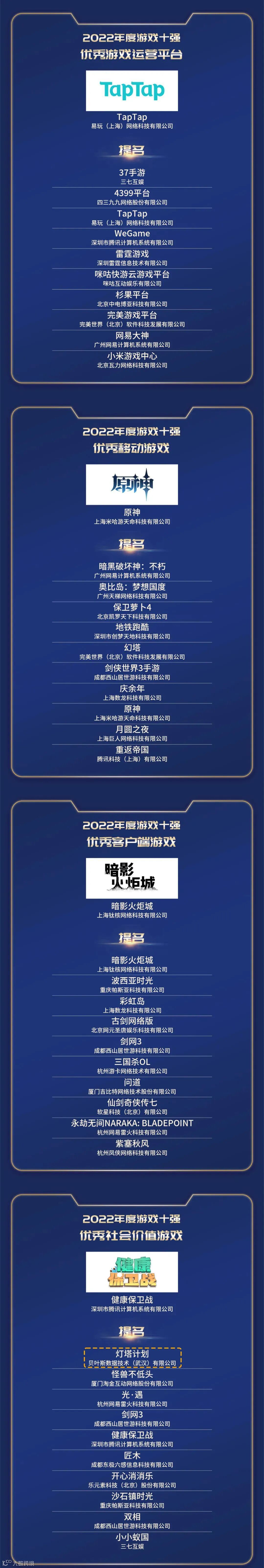 近日,由国家新闻出版署主管,中共广东省委宣传部支持,中国音像与数字出版协会主办的2022年度游戏产业年会在广州举行。在2月13日晚举行的2022年度中国“游戏十强”盛典颁奖礼上,园区企业贝叶斯数据技术(武汉)有限公司研发的游戏产品《灯塔计划》获得中国游戏产业年会2022年度游戏十强“优秀社会价值游戏”提名奖,贝叶斯数据技术(武汉)有限公司获得2022年度游戏十强“优秀游戏科技创新企业”提名奖,是2022游戏十强年度榜单中湖北省唯一上榜的游戏产品和企业。