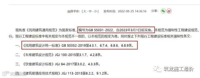 2022年8月25日,住建部批准《民用建筑通用规范》为国家标准,编号为GB 55031-2022,自2023年3月1日起实施。