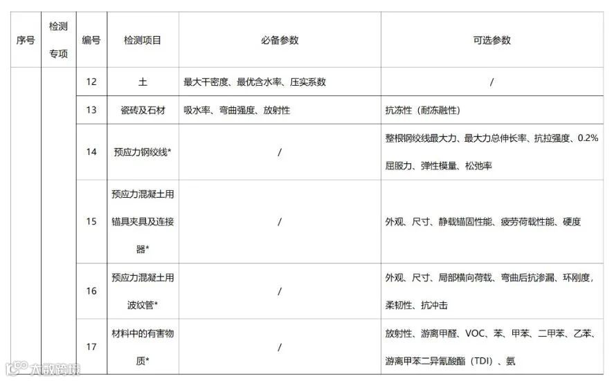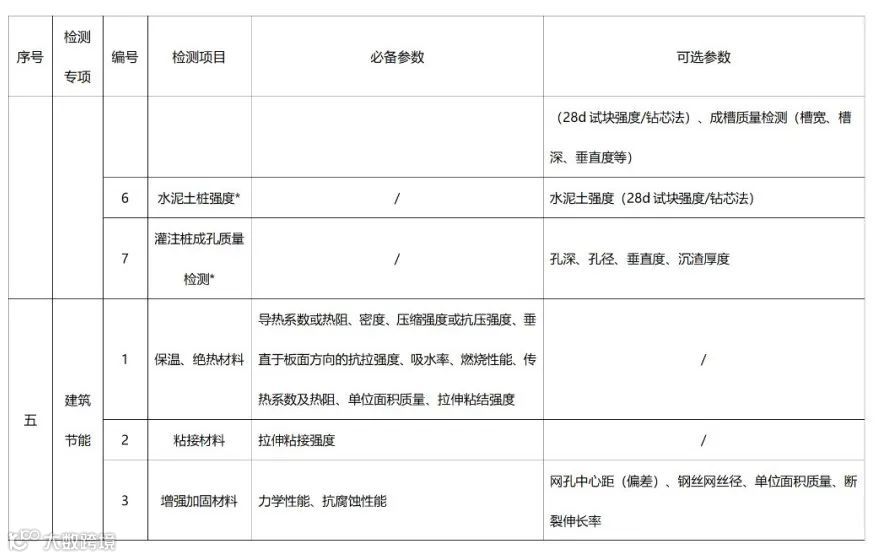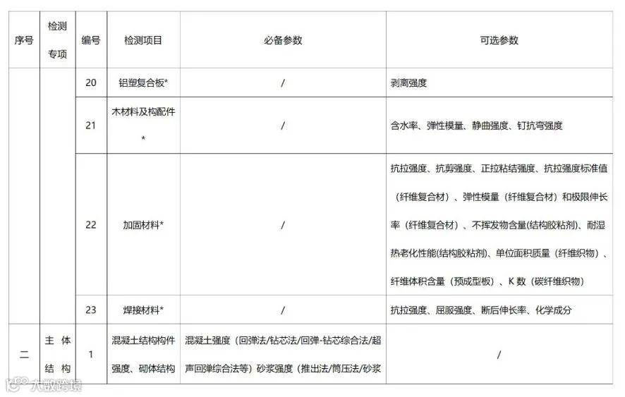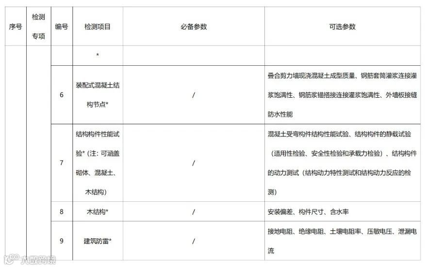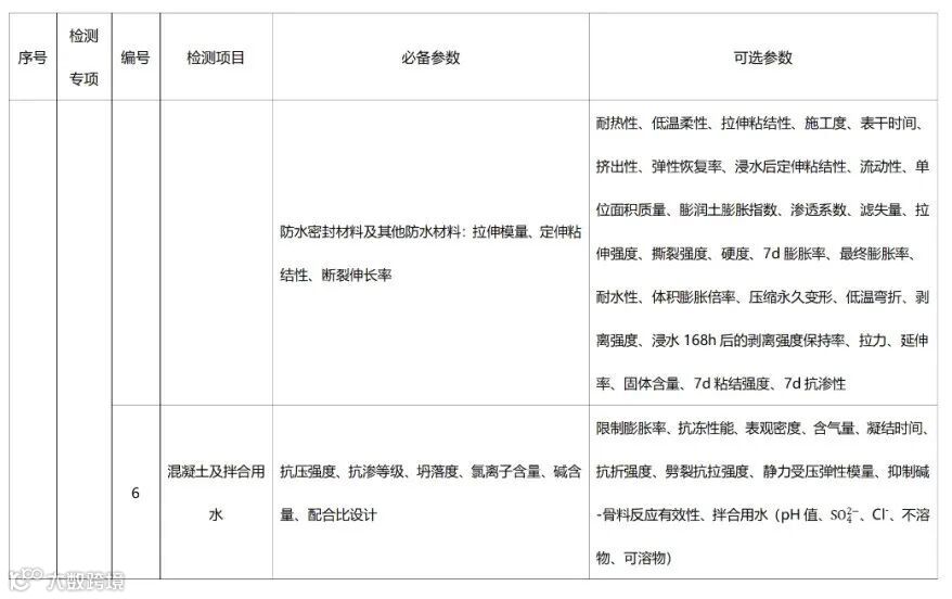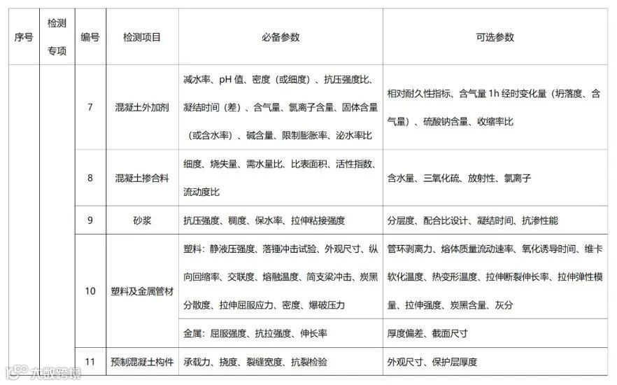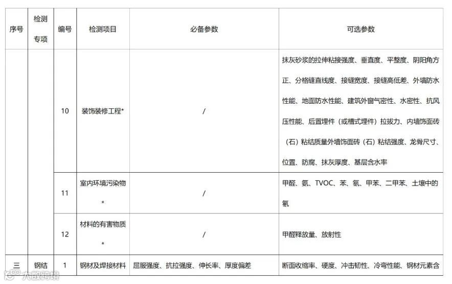 专项资质包括:建筑材料及构配件、主体结构及装饰装修、钢结构、地基基础、建筑节能、建筑幕墙、市政工程材料、道路工程、桥梁及地下工程等9个检测机构专项资质。