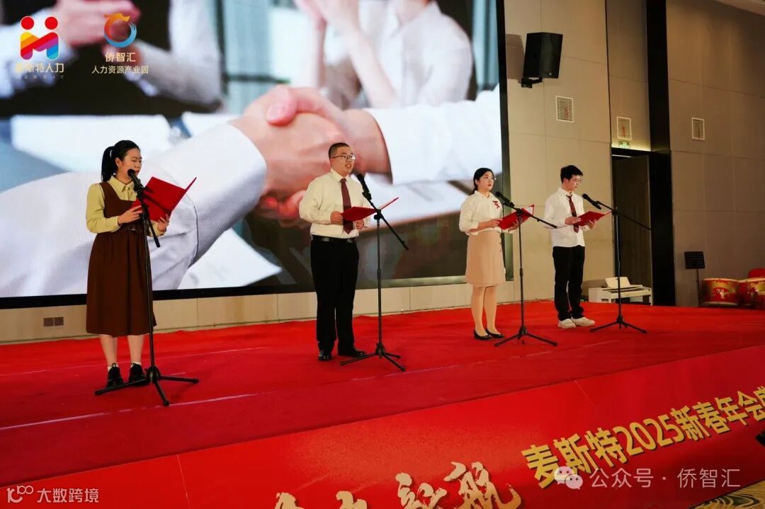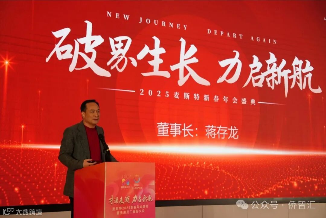集团董事长蒋存龙、创始人李妍菲、总经理林琴携高管团队与全体员工,线上线下同步见证了这场年度盛会,以奋斗之姿共启新华章。这场盛会不仅镌刻着麦斯特人的拼搏印记,更点燃了全体同仁破界生长的信念。