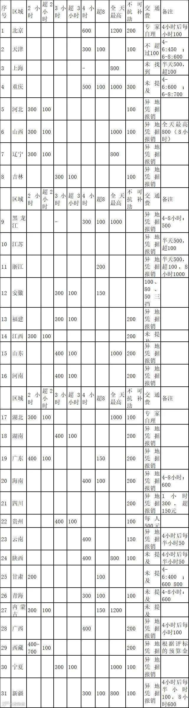 4、交通补助方面:北京自理、天津100包干,安徽分3挡100、80、50,贵州500计发。所以得出异地一定有的报,为什么北京自理,我的理解是北京不需要异地,人家专家多。另外像贵州这样的估计需要异地专家评审的情况比较多,而交通补助也较高。