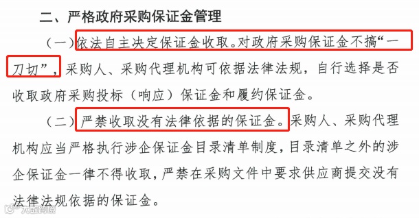 长期以来,在招标采购活动中,保证金制度备受诟病,保证金被占用、挪用等违规违法行为屡屡发生,企业因投标,导致大量资金被占用,且周期很长,负担过重,不利于企业特别是中小企业的发展。