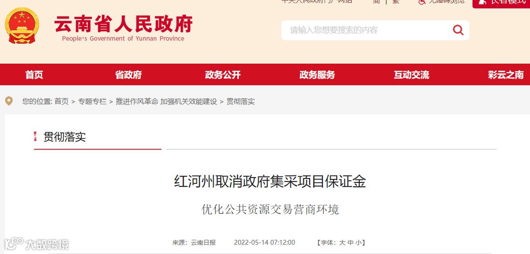 2022年4月19日,红河州政务服务管理局(红河州公共资源交易管理局)和州财政局下发《关于取消政府集中采购目录内集采项目投标保证金设置和收取的通知》,其中明确,红河州辖区内凡是组织实施交易的政府集中采购目录内的项目,新发布采购公告、采购文件的,不再设置和收取投标保证金。