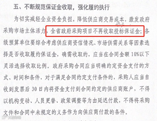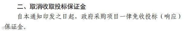 山西晋城:全面取消投标保证金。在我市开展的政府采购项目,原则上取消投标保证金,同时不再收取相应保函。