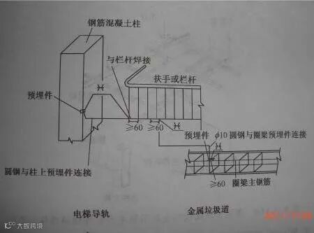 结合图纸在电梯井、管井等需要预留接地点的地方预留镀锌扁铁。