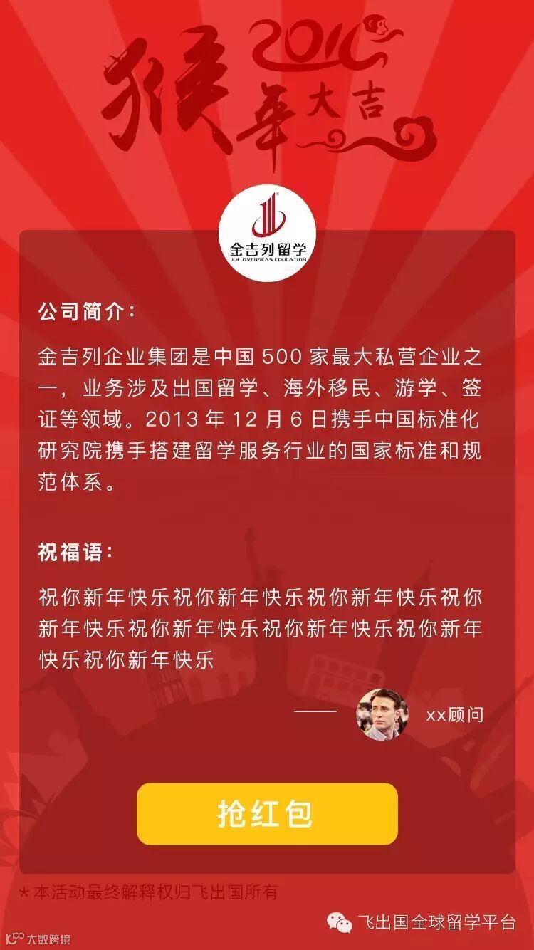 2:飞出国为商家定制个人红包发放页