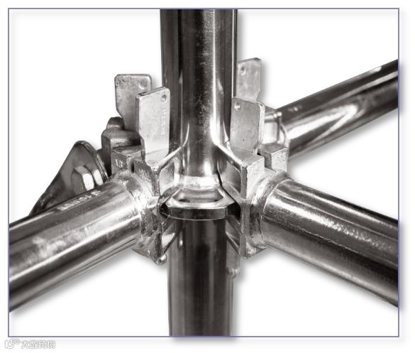 盘扣杆件表面采用了热浸镀锌处理,不易掉漆、生锈,彻底避免了传统脚手架常出现的油漆涂刷不均匀、油漆脱落、形象不佳等弊病,雨水不易侵蚀,不易生锈,且颜色均匀一致,大面积的银色显得更为大气美观。