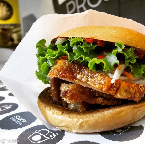 这种汉堡的特点是:牛奶面包夹着由牛腩、牛肩胛肉、猪颈肉组成的肉饼,加上传统家庭式的酱菜、烧烤酱、烟味辣椒。边上还有生菜供生菜爱好者食用。