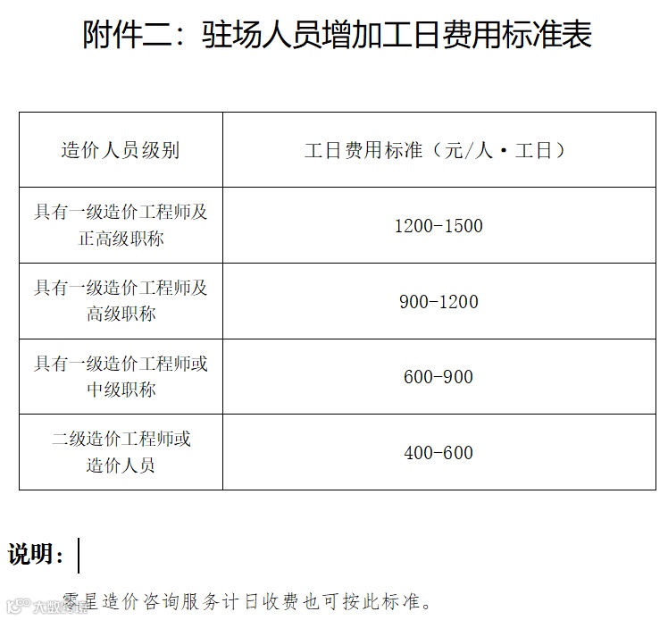 2023年1月6日,北京市建设工程招标投标和造价管理协会发布《北京市建设工程造价行业咨询服务费用计价参考》,其中计日咨询费: