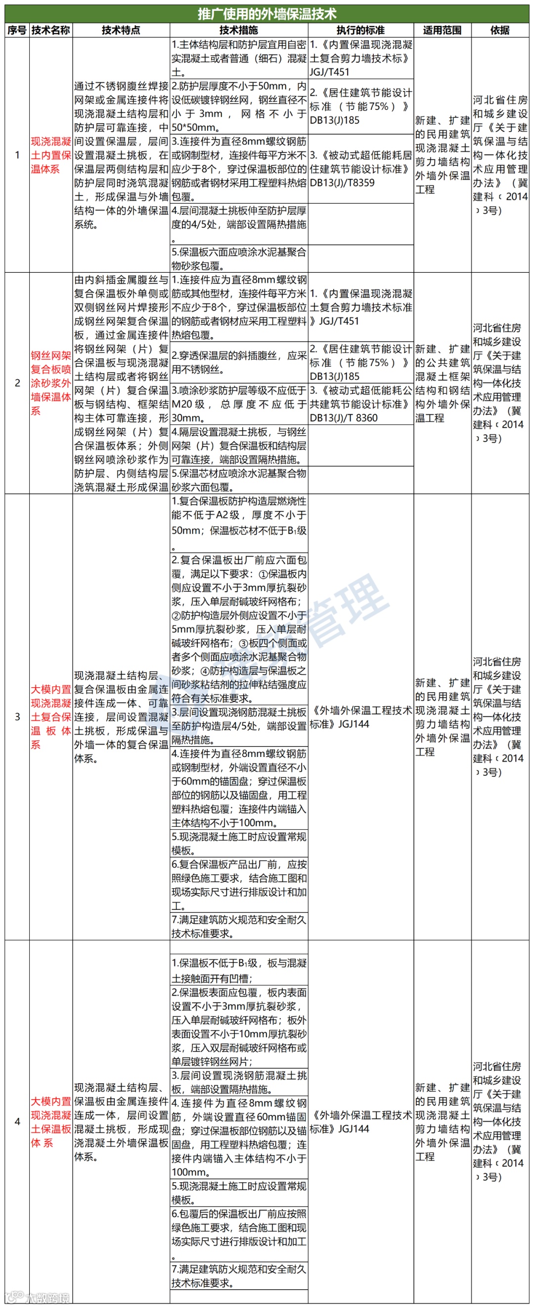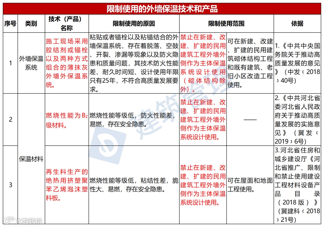 优先选用外墙内保温、外墙自保温、复合保温和装配式新型外墙保温系统,限制采用保温浆料和仅通过粘结固定的保温板等形式的外墙外保温系统。