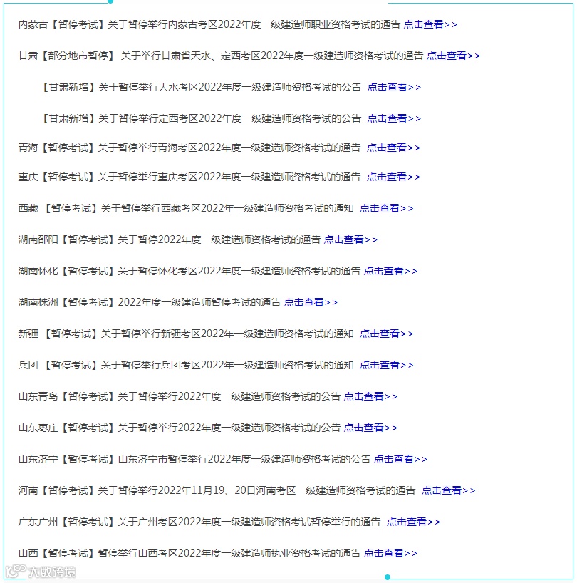 已有多地发布2022年一级建造师考试暂停通知,具体暂停考试地区及通知汇总如下: