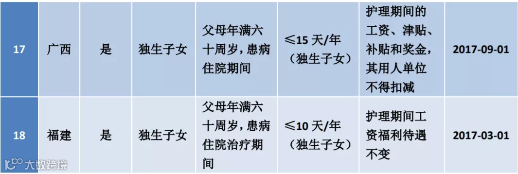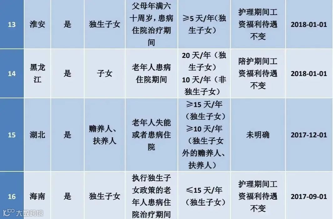 全国陪护假一览表