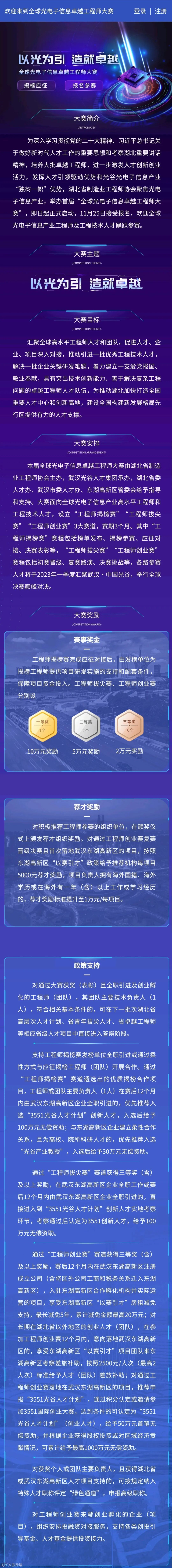 对落地在东湖高新区的获奖人才,光谷给出了诚意满满的支持政策,“工程师揭榜赛”遴选出的人才,根据引进方式优先推荐入选“3551光谷人才计划”创新人才及“光谷产业教授”项目;“工程师拔尖赛”获奖人才可直通“3551光谷人才计划”创新人才,获得100万元资助;“工程师创业赛”获奖人才适用光谷“以赛引才”政策,享受最高20万元房租减免,获得差旅补贴、荐才奖励等支持,符合条件的可认定为“3551光谷人才计划”创业人才,最高给予1000万元资助。