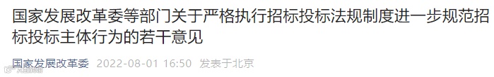 刚刚,发改委等13部门发布《关于严格执行招标投标法规制度进一步规范招标投标主体行为的若干意见》,自2022年9月1日起施行。《意见》共提出5方面20条具体政策举措。