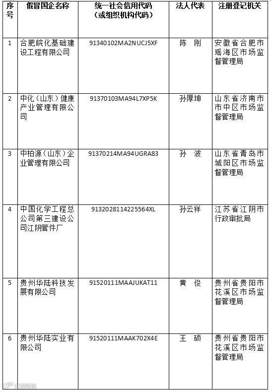 中国化学关于不法企业假冒我集团子公司有关情况的公告