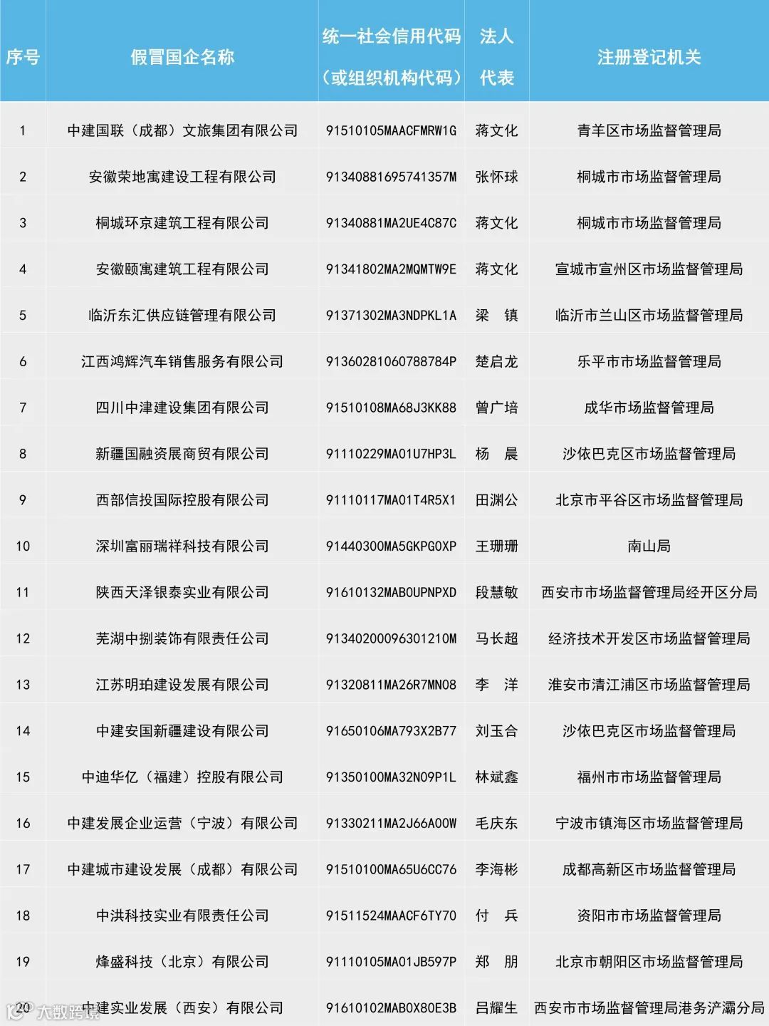 日前,几大建筑央企发布公告,披露一大批假冒子公司。具体如下: