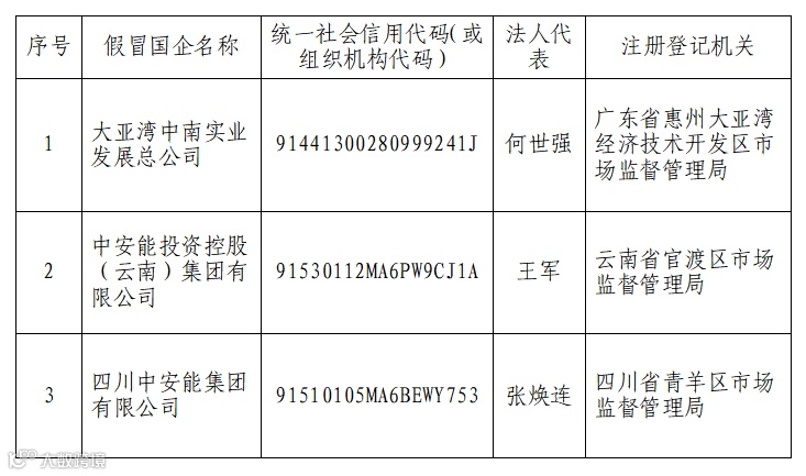 长期以来,有不法分子通过伪造相关材料等方式,将企业注册为我集团下属子公司,以我集团下属公司名义开展业务。经我集团核实,以下公司及其下设各级子公司均为假冒国企,与我集团无任何隶属或股权关系,也不存在任何投资、合作、业务等关系,其一切行为均与我集团无关。请社会各界提高警惕,注意防范风险,如发现其违法犯罪行为,请尽快到公安机关报案。