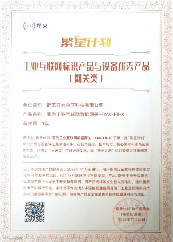 本次评选,经过现场产品介绍、产品演示说明及专家质询答疑3个环节,从产品的技术指标、基本能力、核心需求及市场应用等4个方面对参评产品进行了审议,共计4款产品通过本次评选。武汉留创园孵化服务企业—武汉亚为电子科技有限公司凭借“亚为”工业互联网数据网关——YAV-FII-X成功入选,为华中地区唯一入选企业。