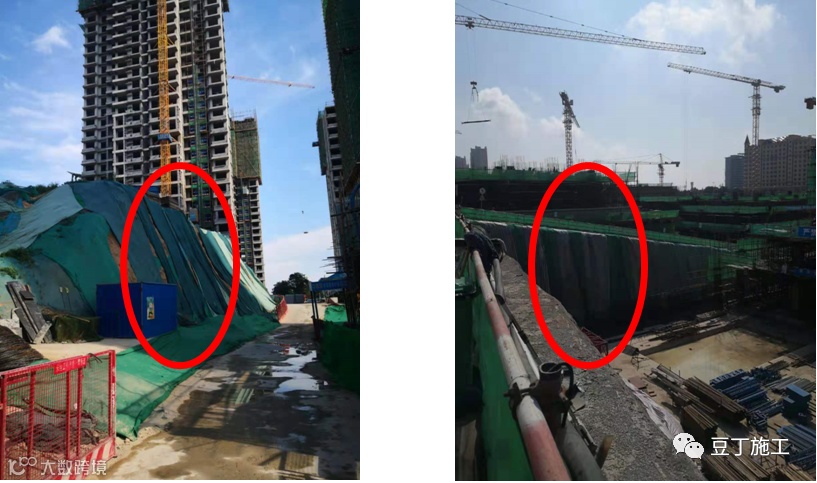 基坑边坡挡水、排水或喷锚不到位。