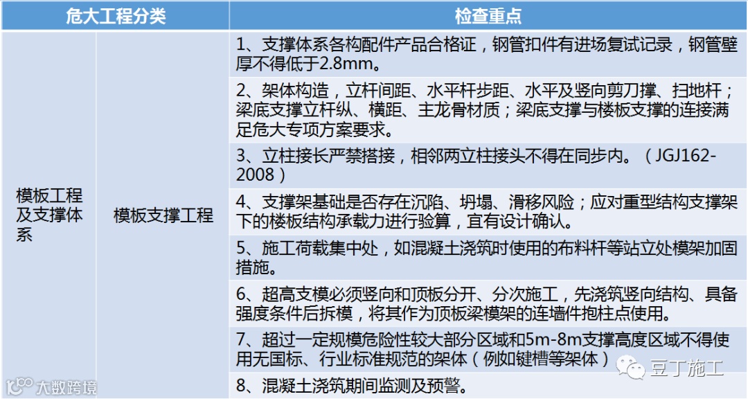 1、常规危大工程检查要点