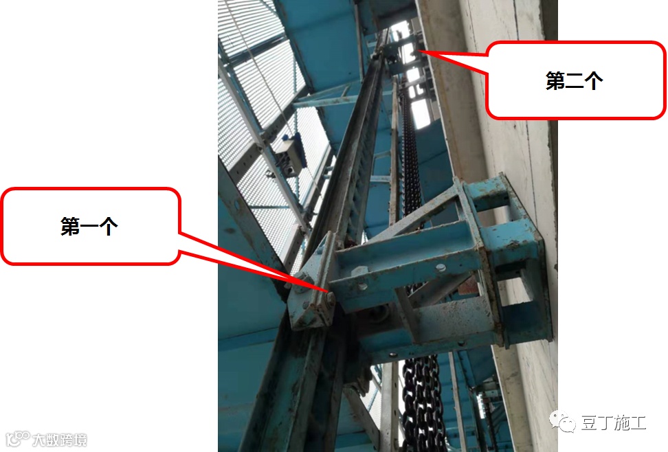 爬架方案和方案交底对于升降机顶部的架体连接及加强措施均未明确,导致现场电梯顶部爬架变形,钢管变形。