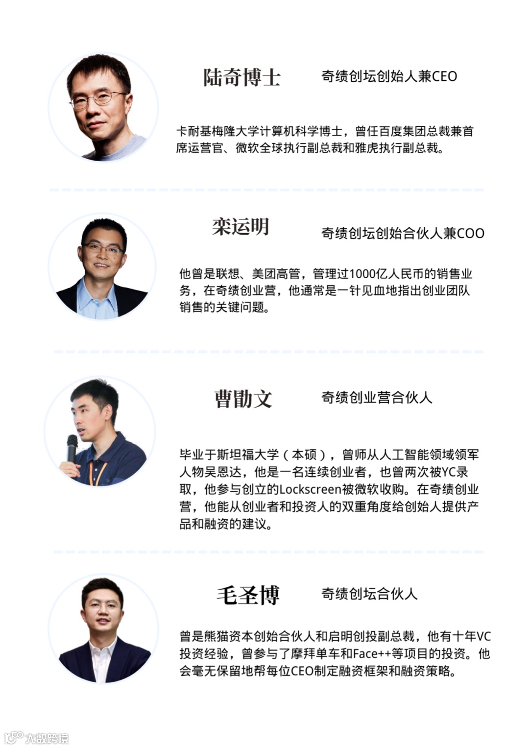 奇绩创坛的前身是YC中国(YC是全球顶尖的早期投资加速机构,被投公司总估值超3000亿美金,是Airbnb、Dropbox等近30家独角兽的首轮投资机构)。奇绩团队将YC