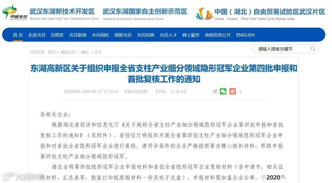 申报时间:2020年9月11日中午12:00前送至东湖高新区企服局