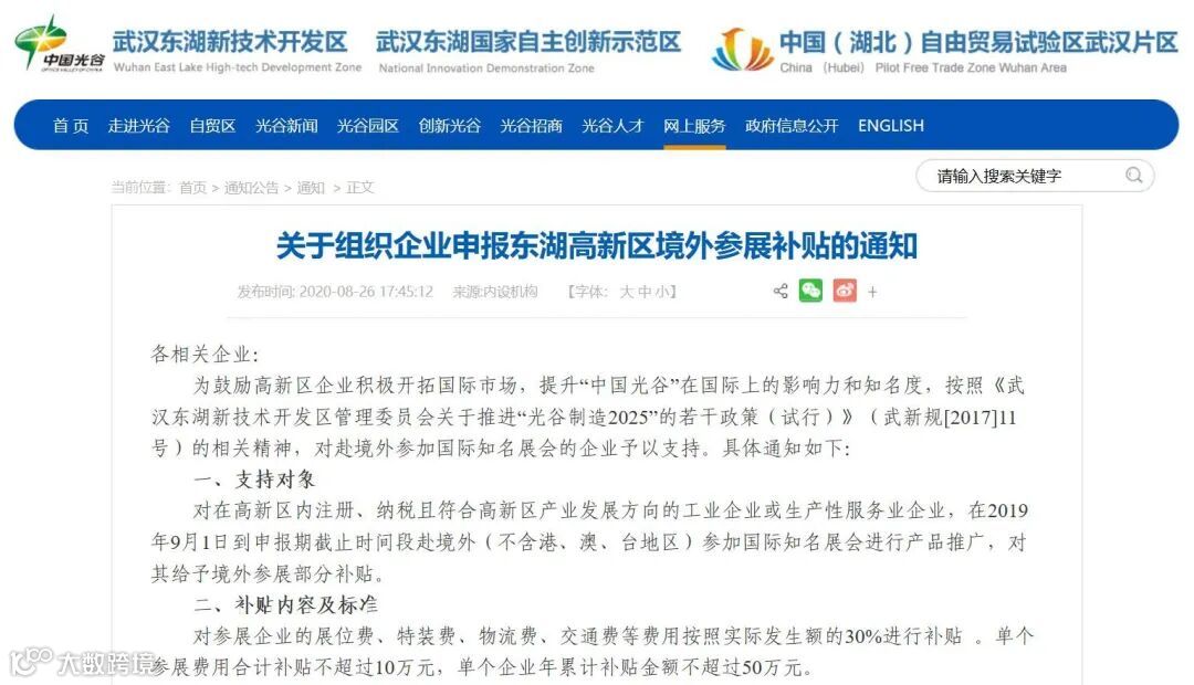 境外参展补贴的通知